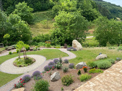 Spielplatz mit Schaukel und Rutsche | Trampolin mit Sicherheitsnetz | der "schräge" Hühnerstall mit echten Hühnern und vielen Eiern